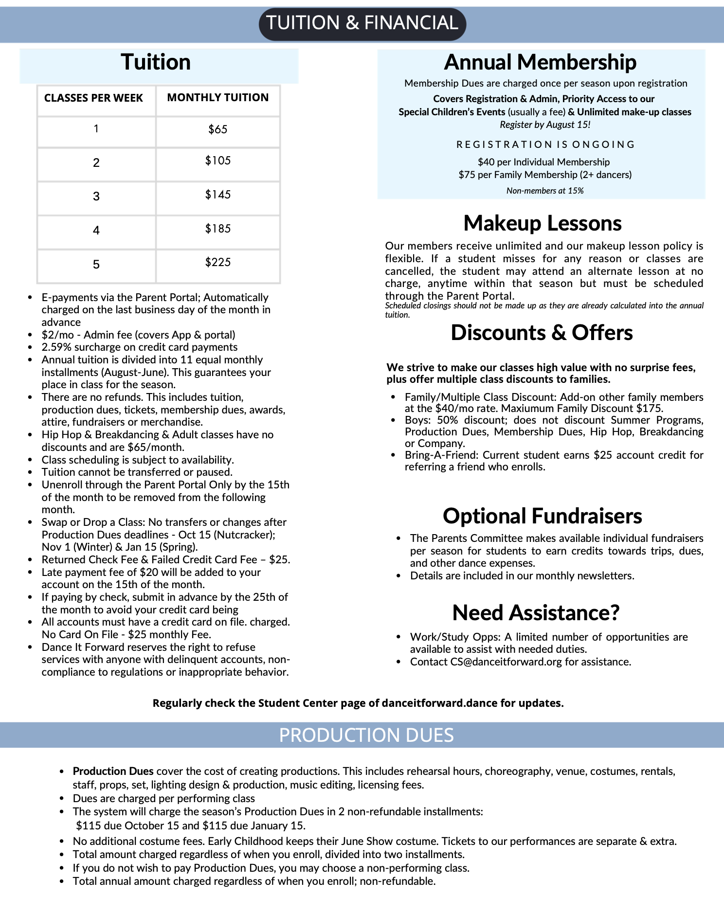 - We are a collegiate-focused center for dance, not a competition school.
